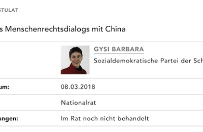 Mehr erfahrenEvaluation des Menschenrechtsdialogs mit China / NR Barbara Gysi Stellungnahme des Bundesrates…