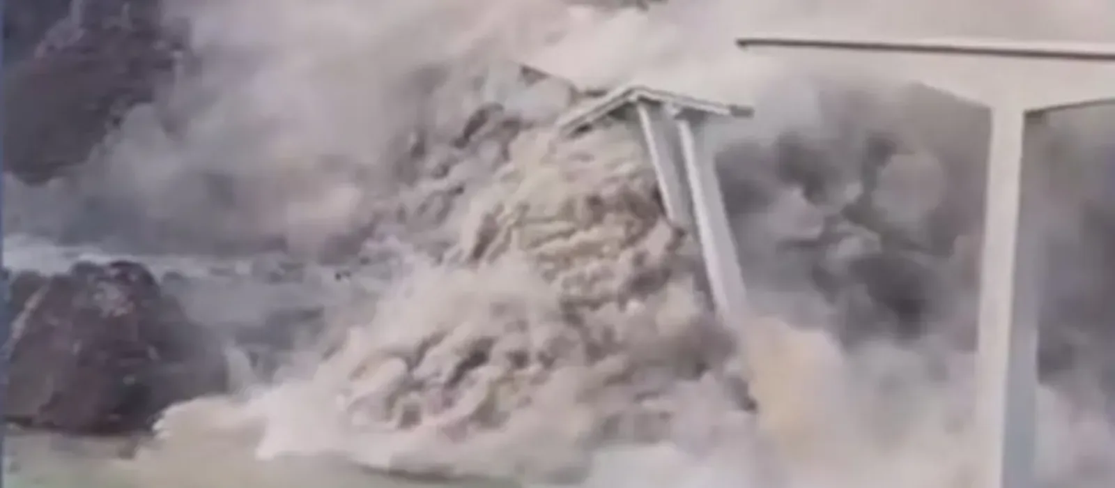 Der Erdrutsch setzte drei Millionen Kubikmeter Steine und Geröll frei. Die Brücke konnte dem nicht lange standhalten. (Quelle: Screenshot youtube.com)